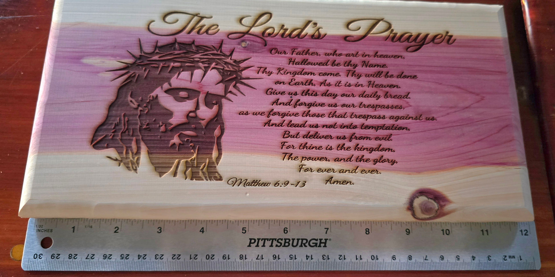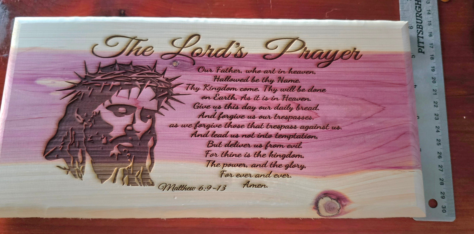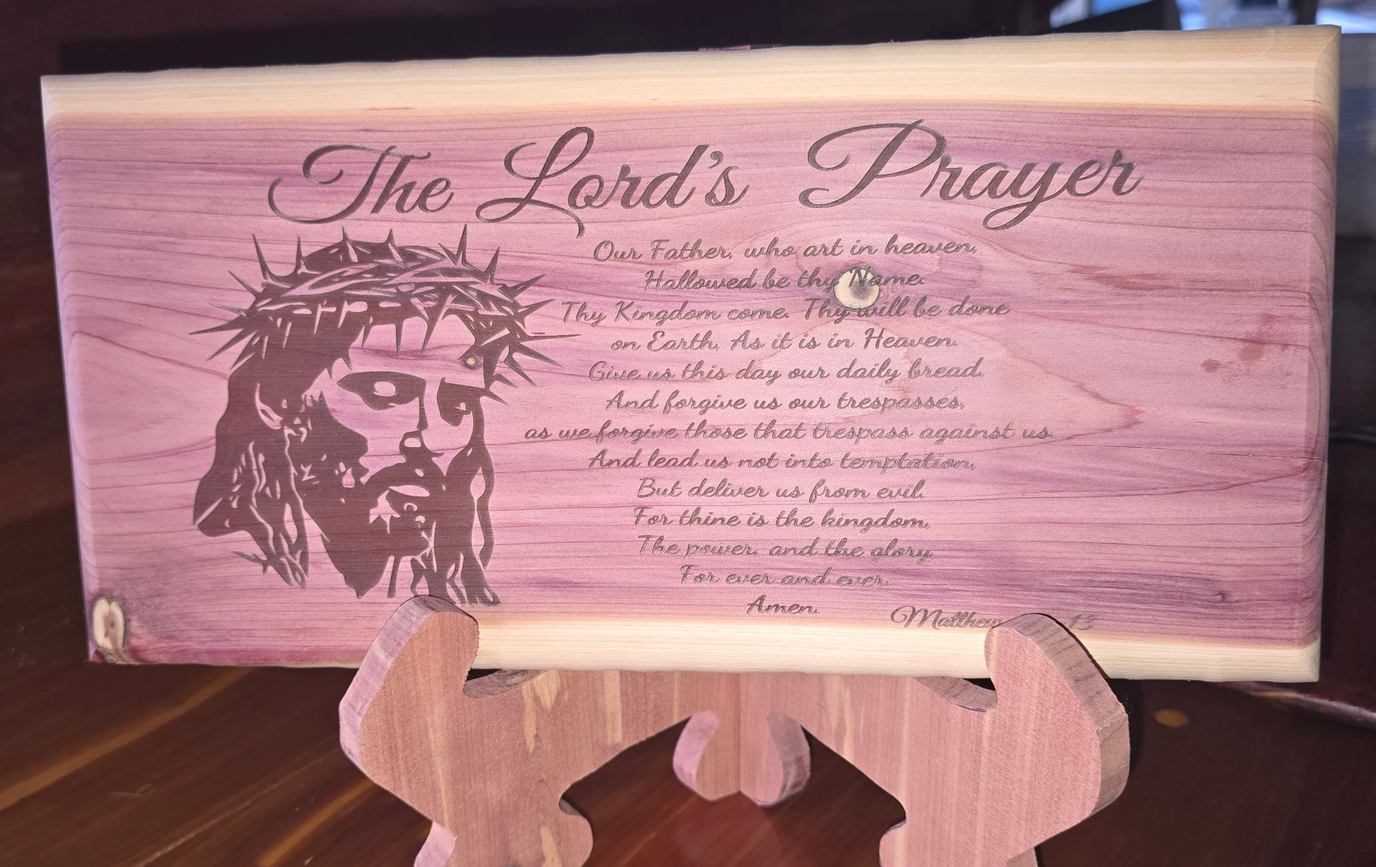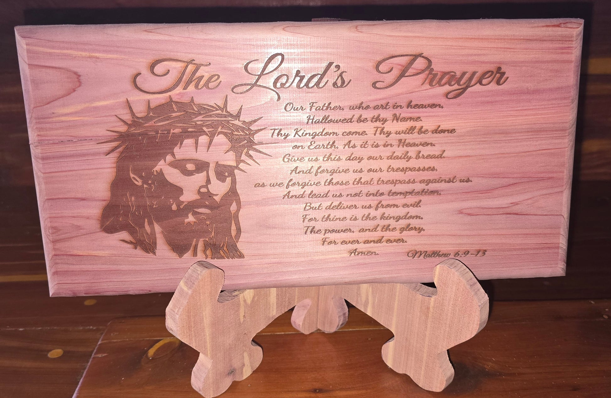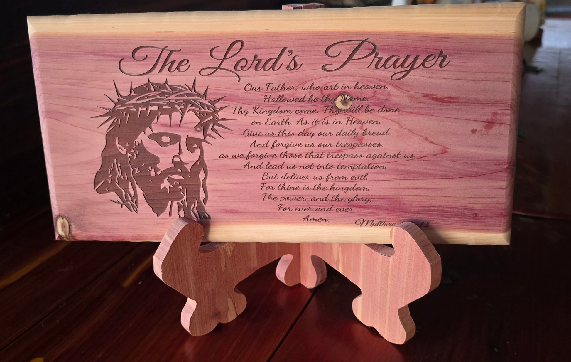 Handcrafted Cedar Plaque – The Lord's Prayer | Laser Engraved with stand .